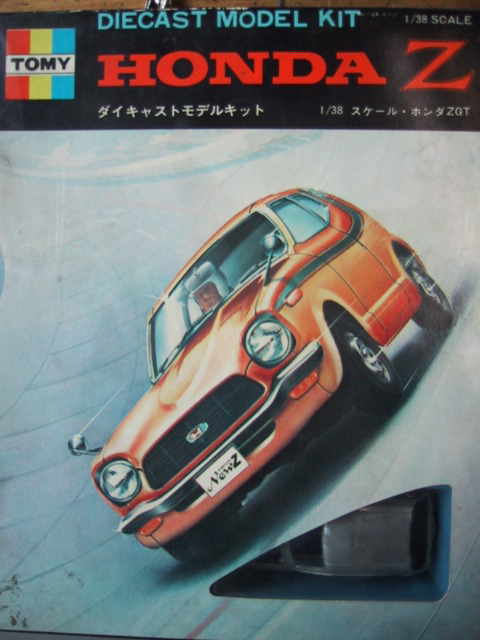 トミー 1/38 ホンダZ GT 第一回のお宝は、トミーのホンダZです。トミーのホンダZと言えばトミカダンディが有名ですが、こちらは金型が同じの組み立て式モデルです。箱絵は『newZ』となっていて、グリルからも水冷クーペを思わせますが、エンジンはダンディの金型と同じなので空冷のままとなっています。