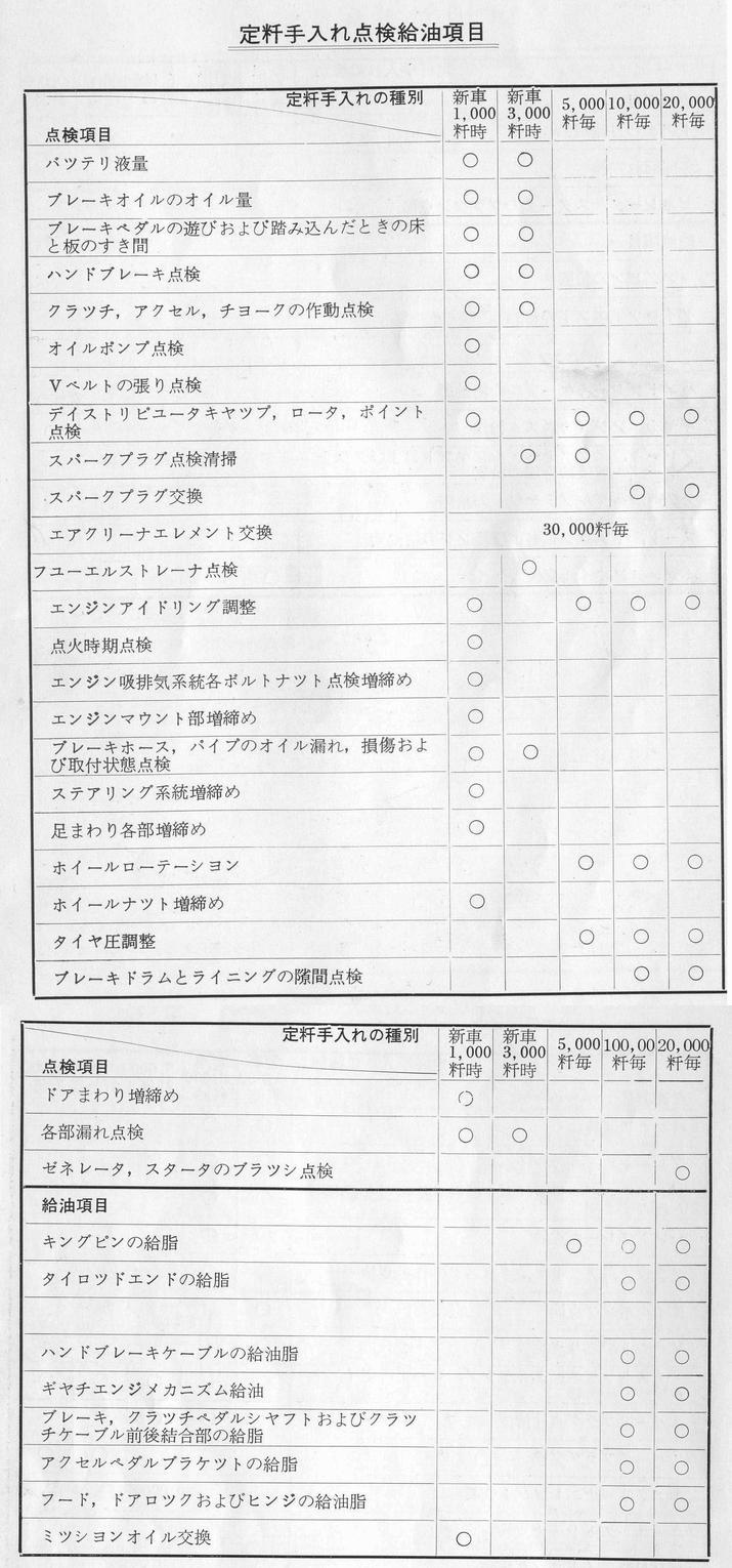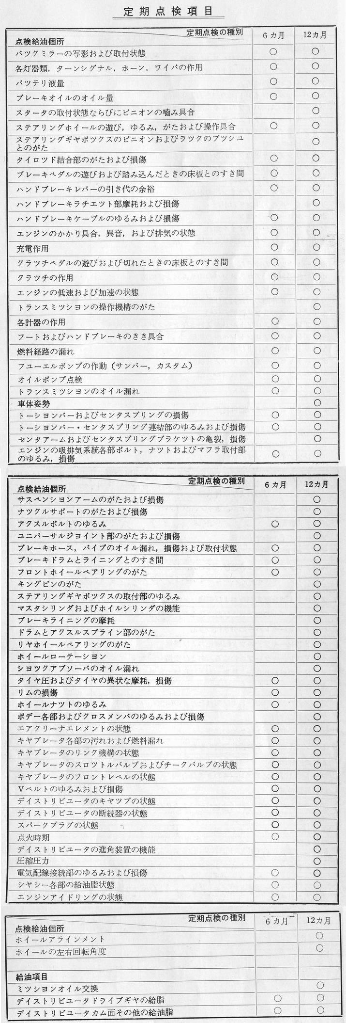 定粁手入れ点検給油項目
