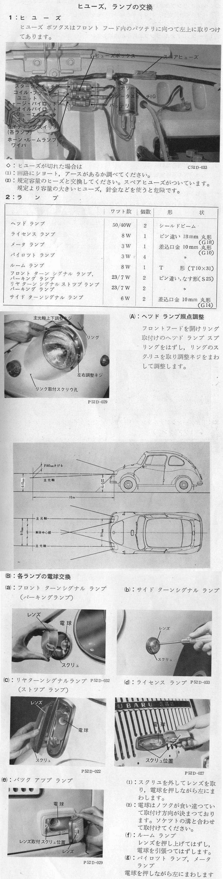 ヒューズ、ランプの交換