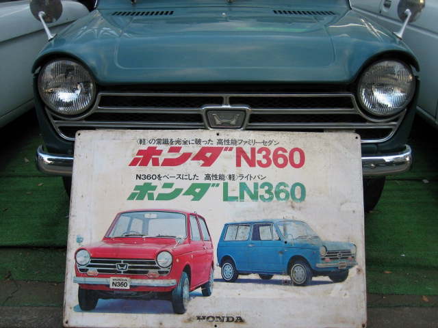 N360の看板 これは近所のリサイクル屋さんがらの預かり物です。 ちょうどNがあったので一緒に撮ってみましたが、これで純正色揃ったかな?? 一応売り物ですので、もし欲しい方がいらっしゃればご紹介します。